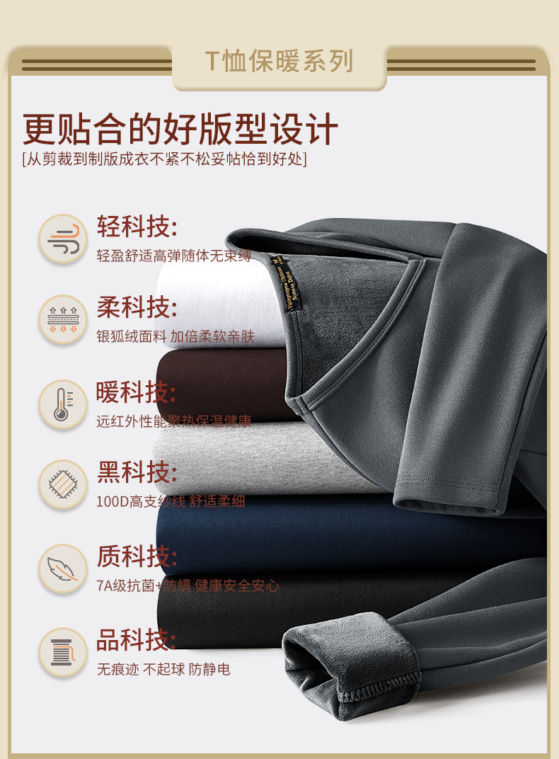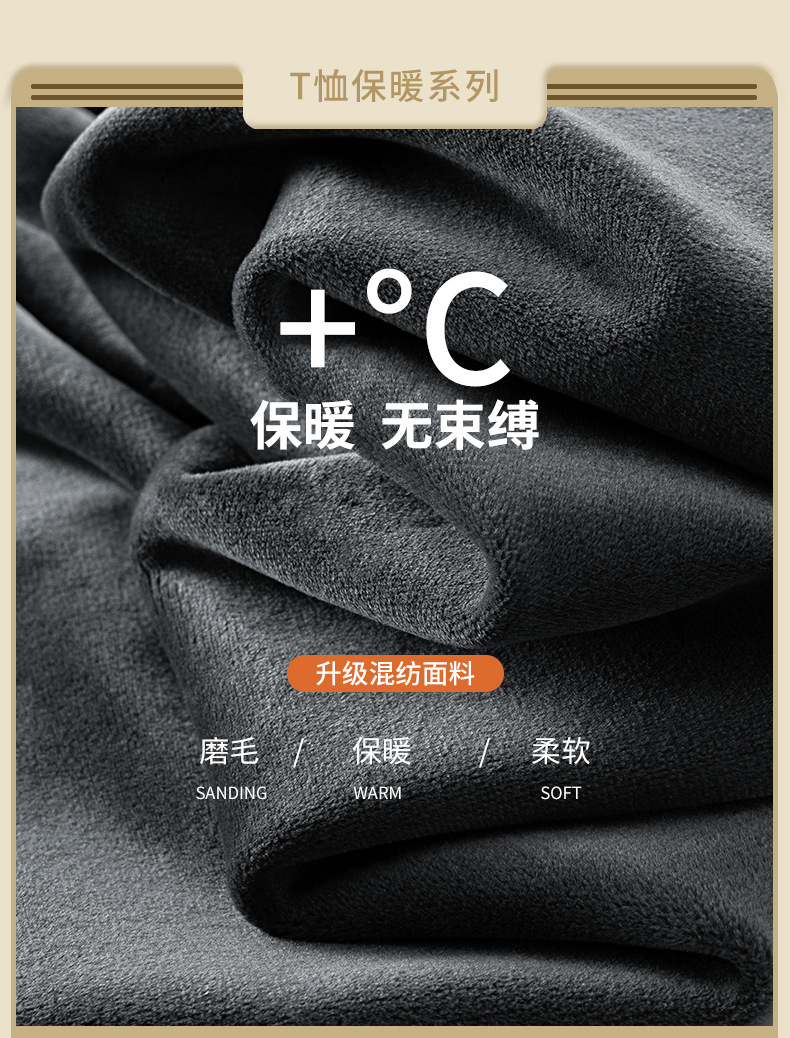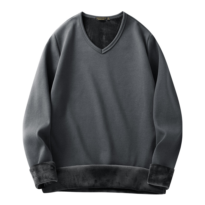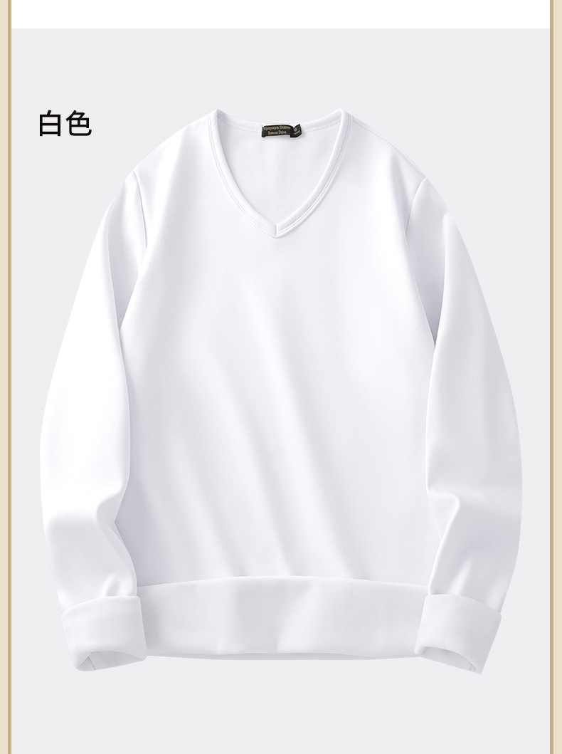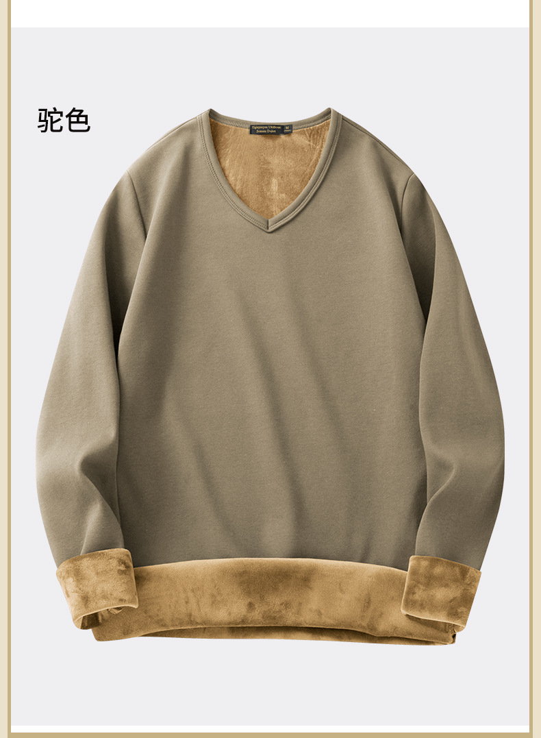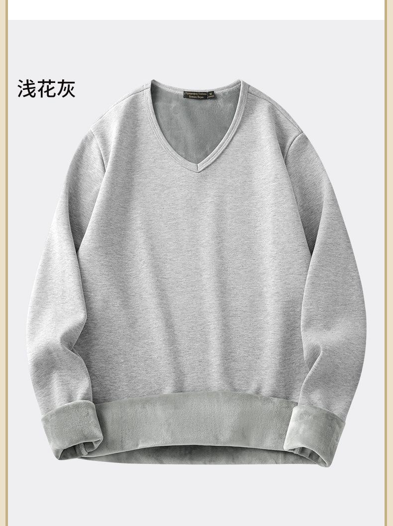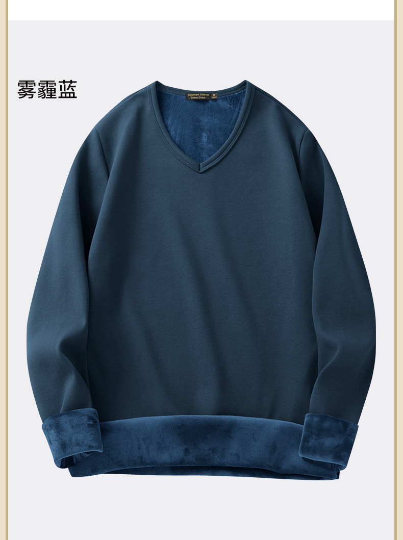 秋冬季男士长袖t恤加绒v领打底衫纯色加厚保暖衣服秋衣内衣