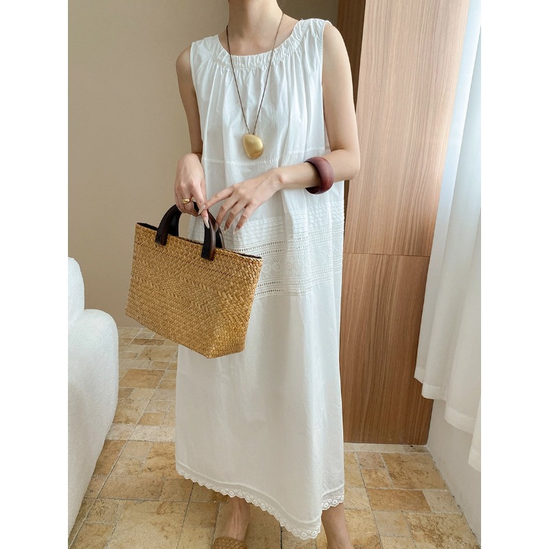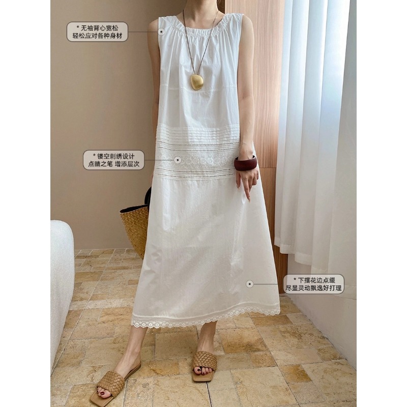 司南淡人假日温柔气质法式镂空刺绣花边无袖背心连衣裙