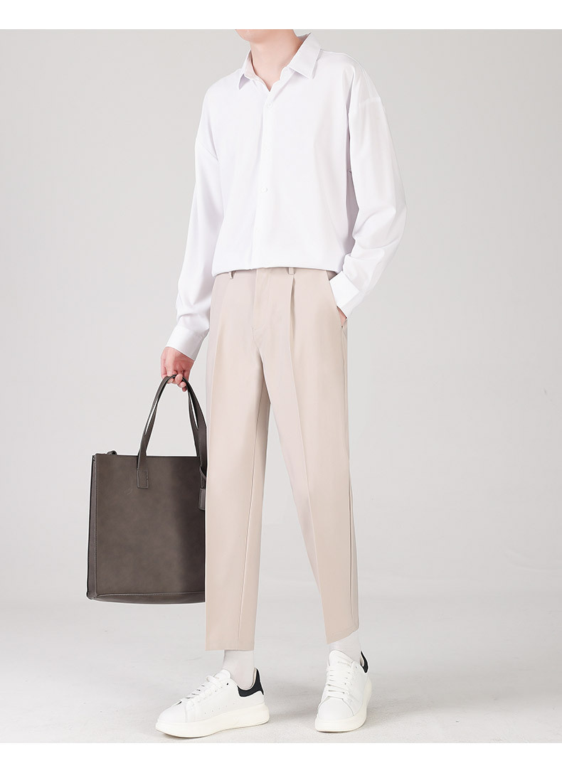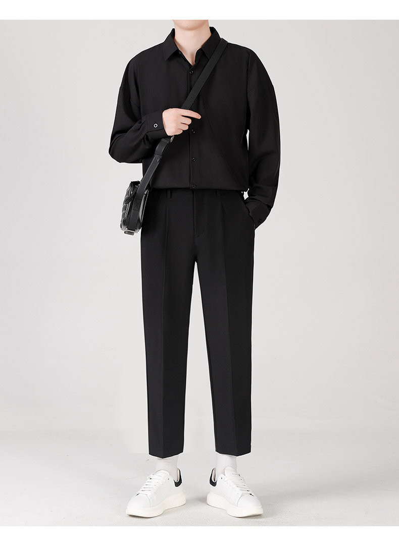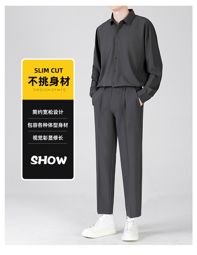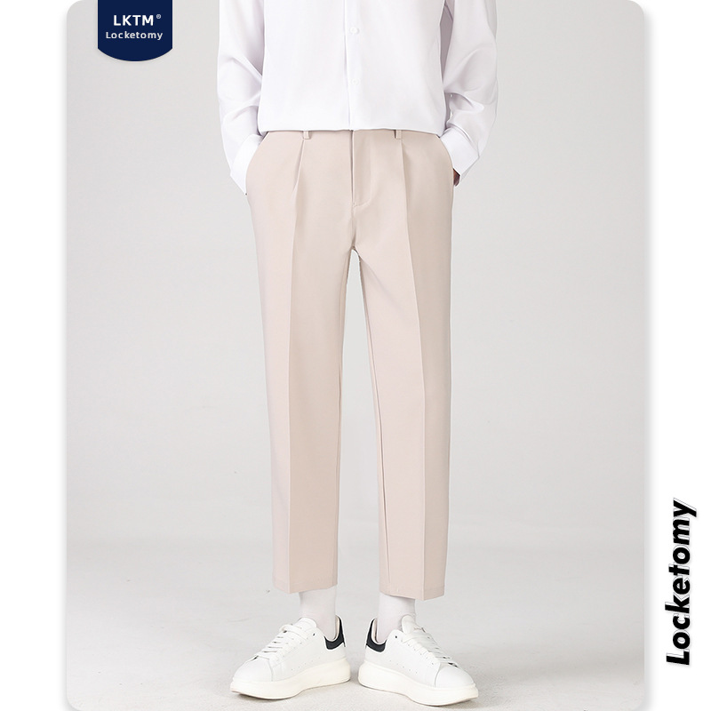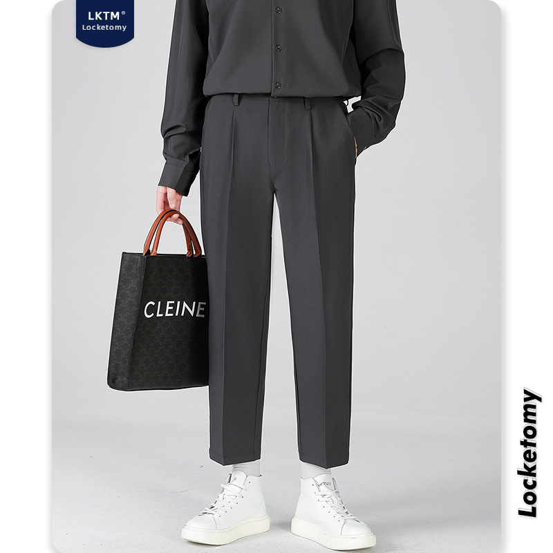 LKTM男装#帅气小西裤男韩版潮流垂感宽松直筒九分长裤休闲西装裤
