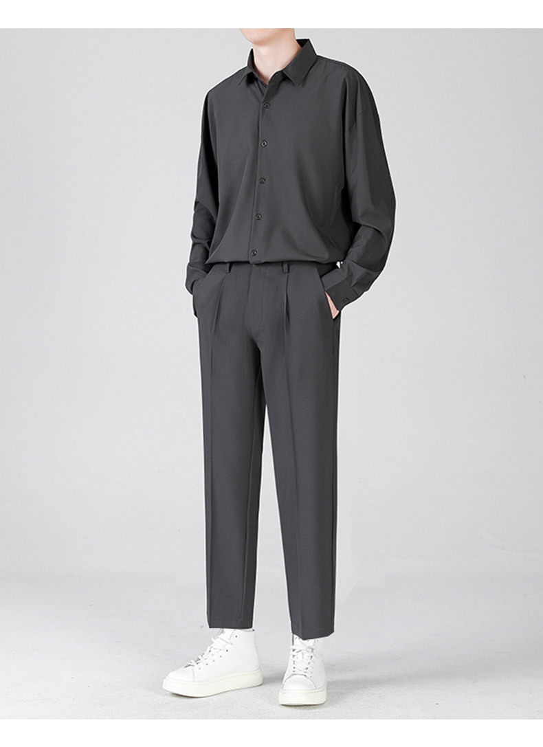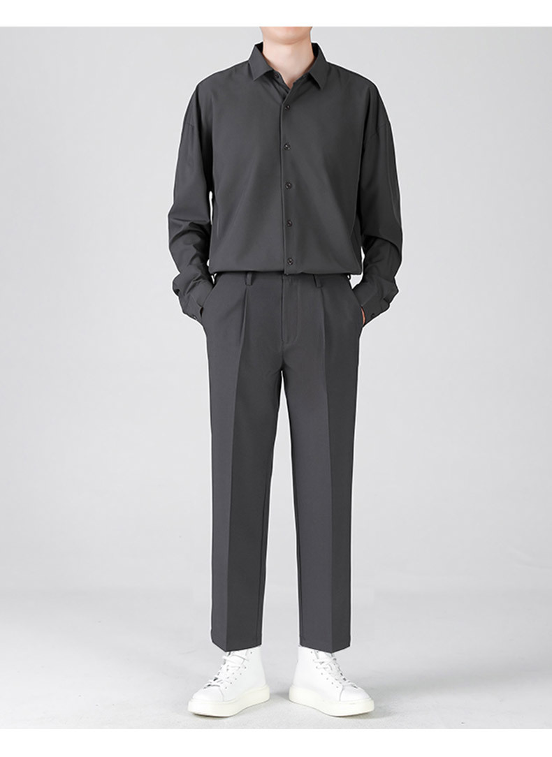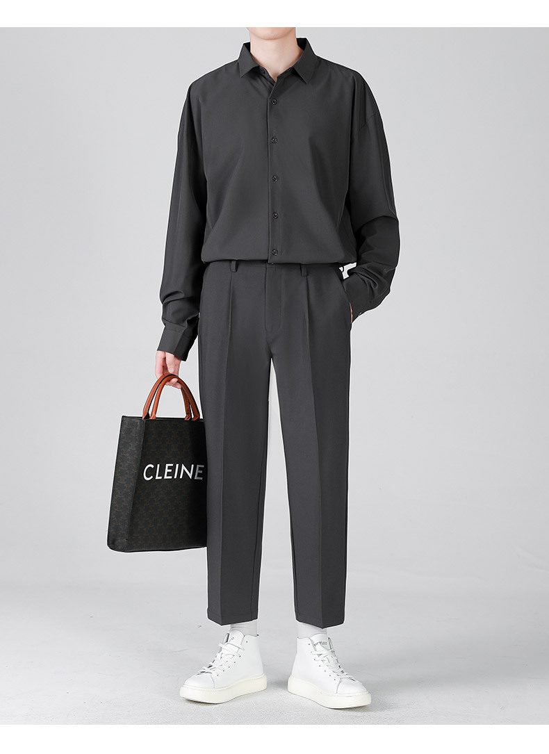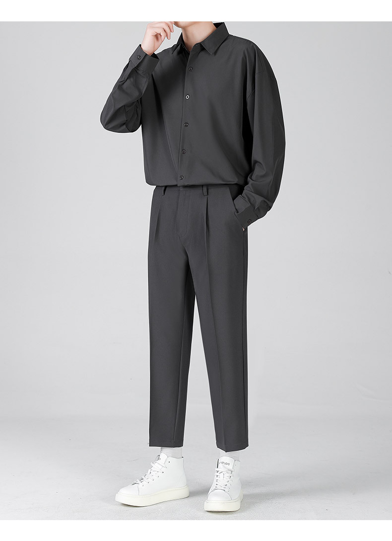 LKTM男装#帅气小西裤男韩版潮流垂感宽松直筒九分长裤休闲西装裤