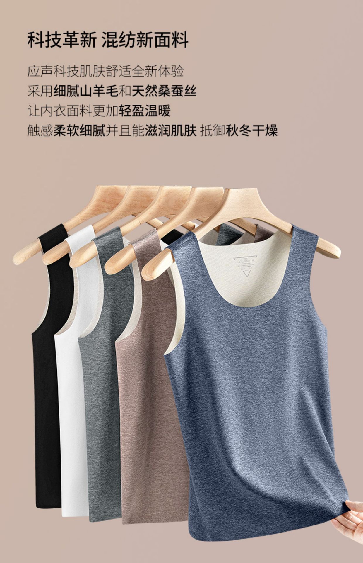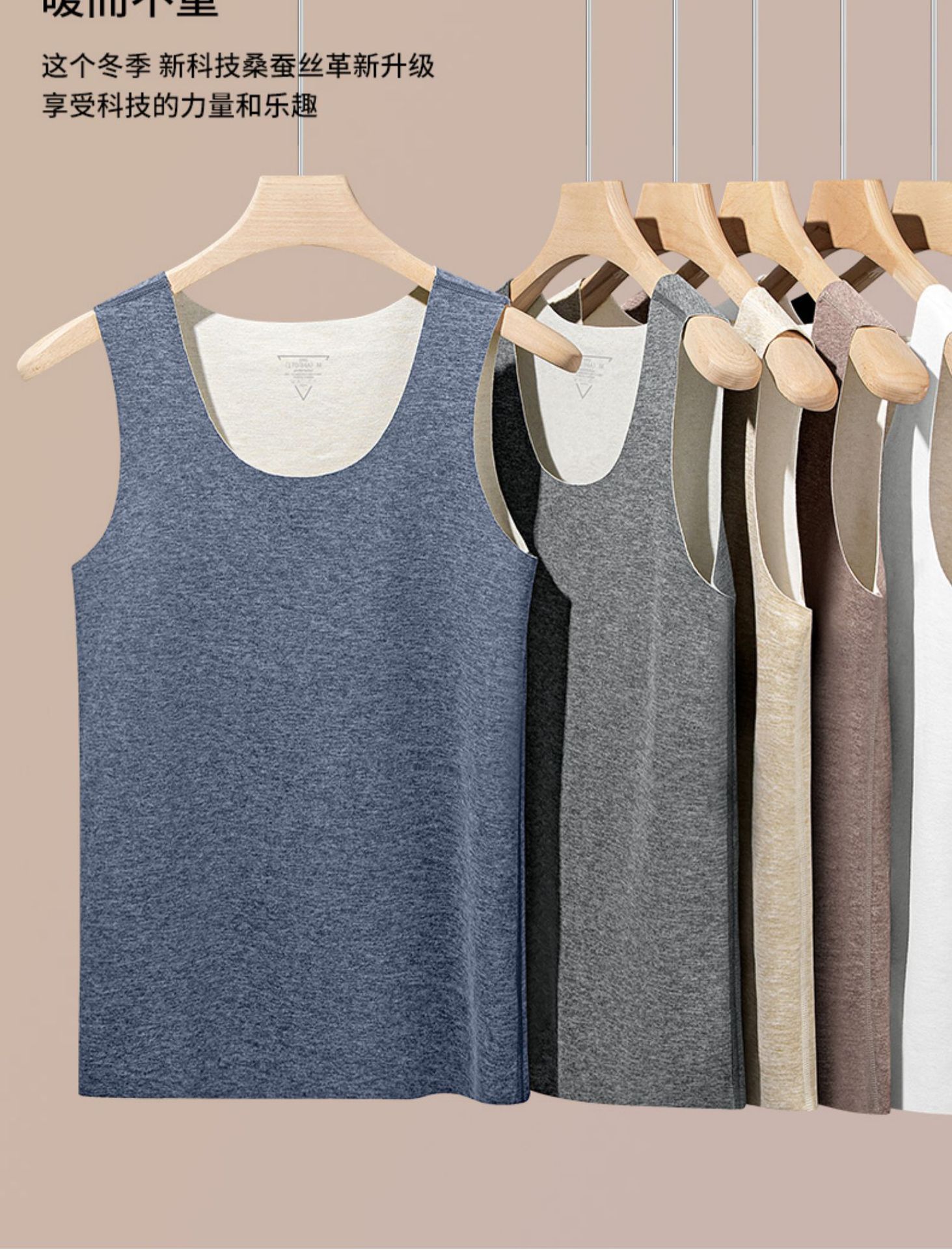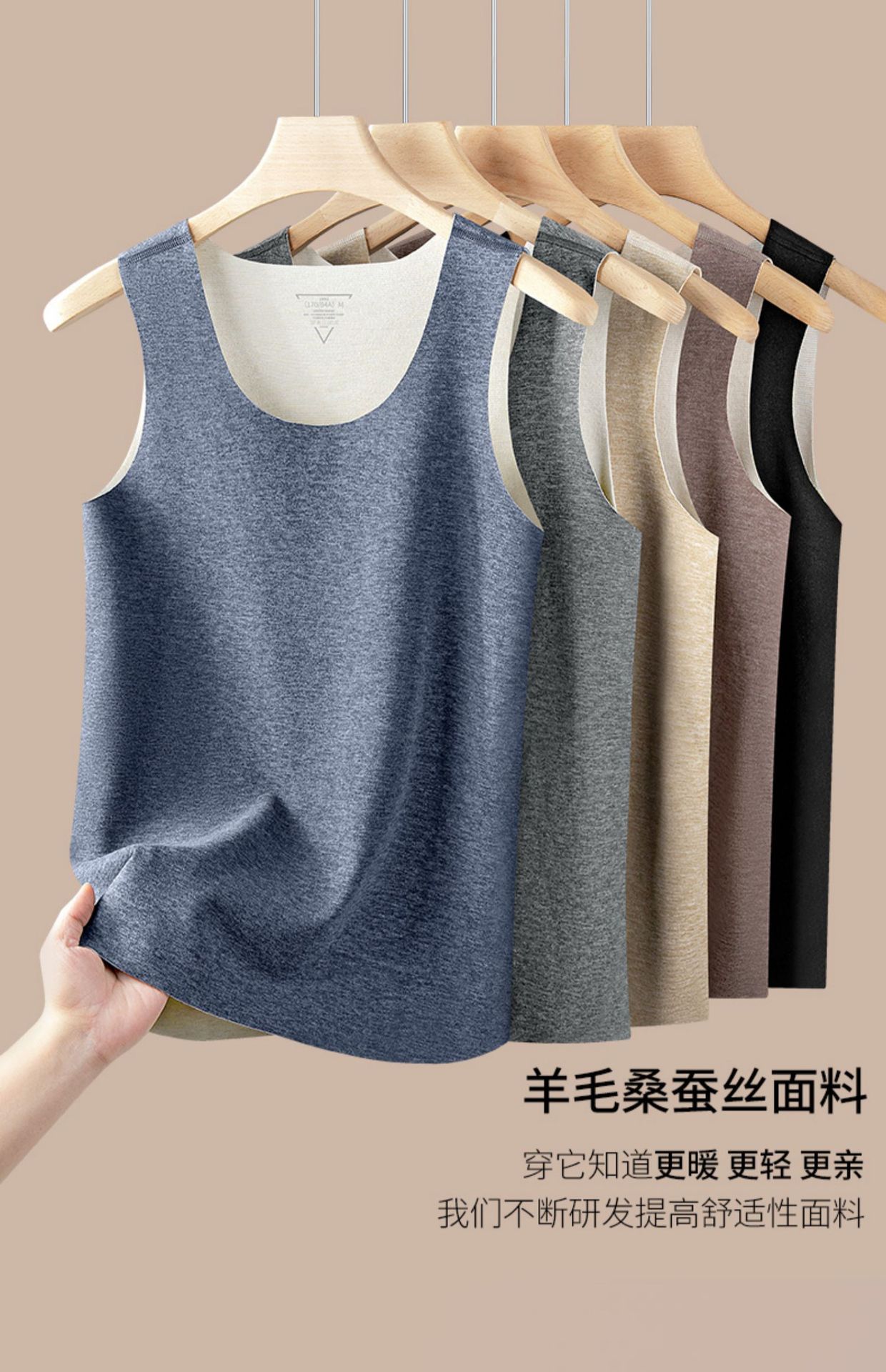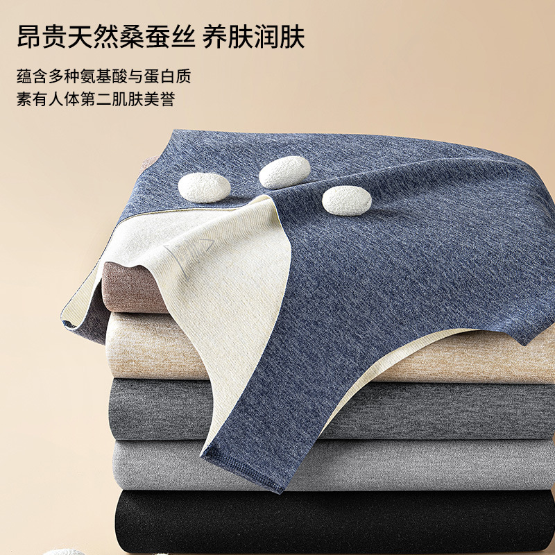 桑蚕丝羊毛保暖内衣无痕男德绒发热内穿加绒打底背心冬季圆领上衣