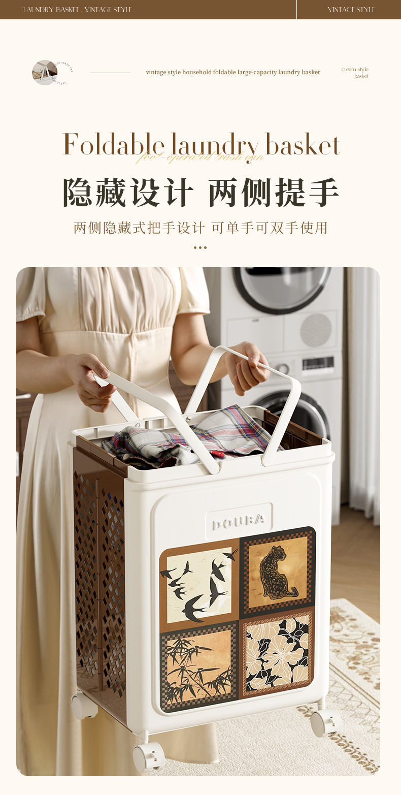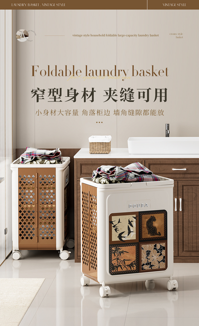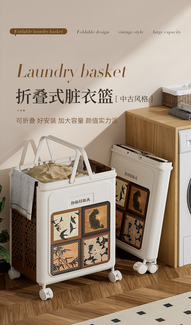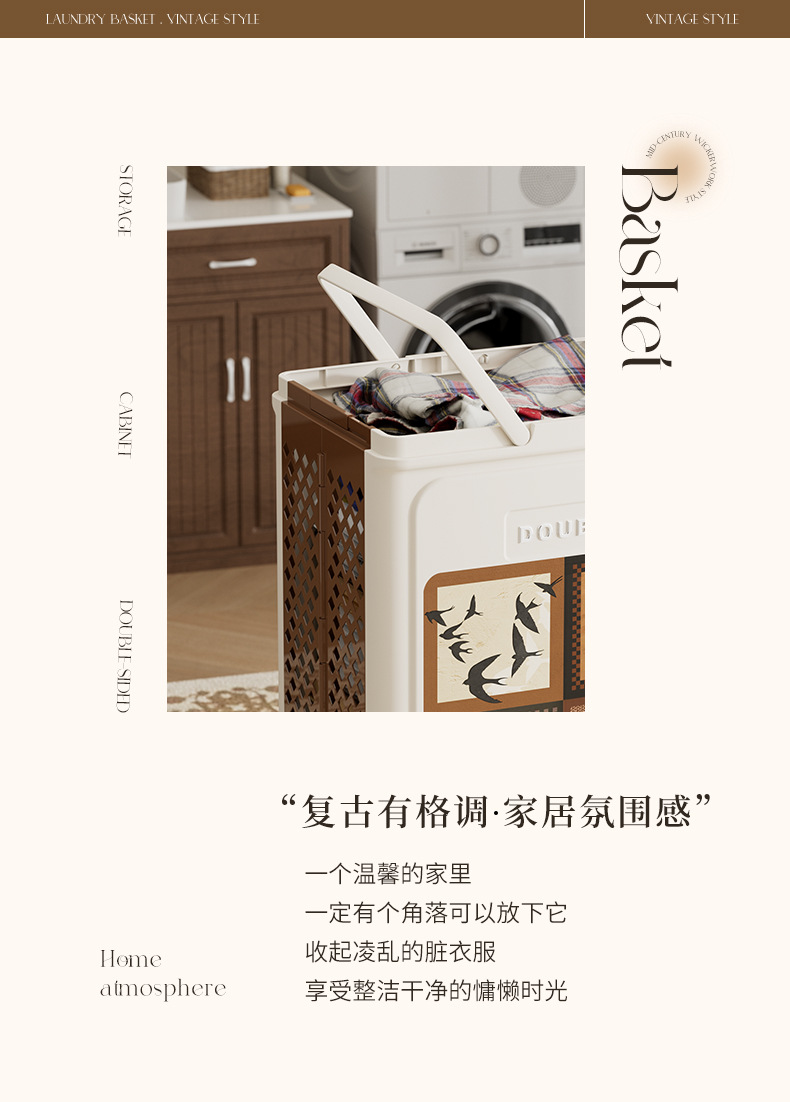 中古风折叠脏衣篮家用洗衣篮收纳筐脏衣篓阳台卫生间脏衣服收纳篮