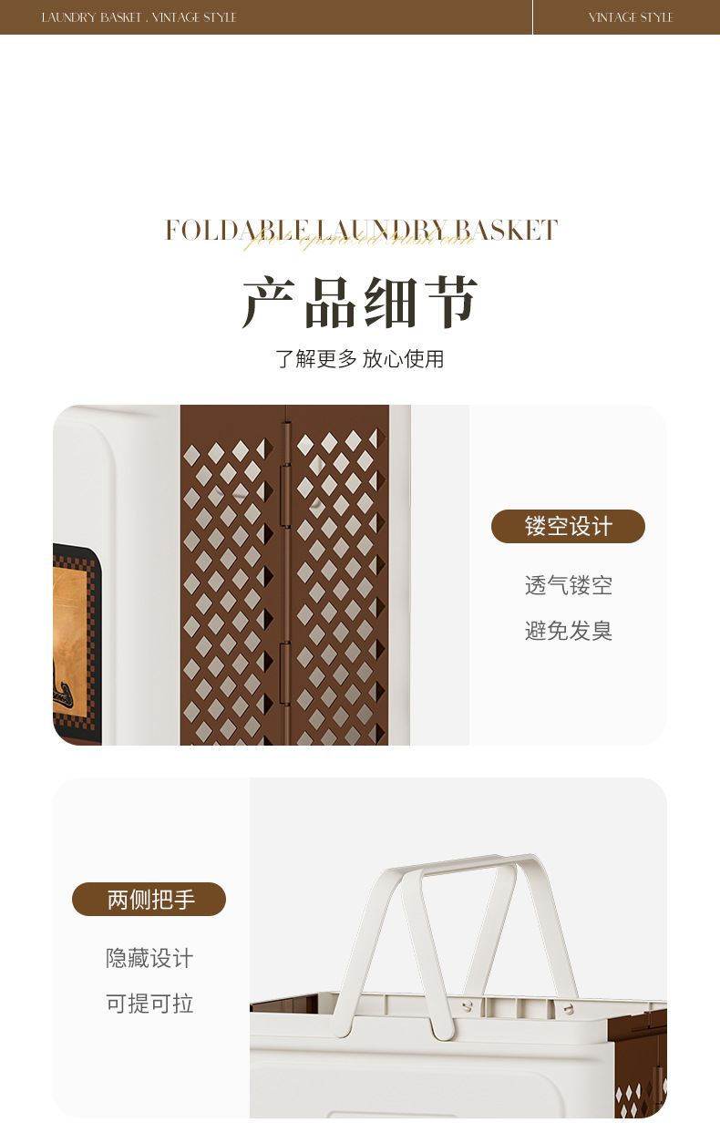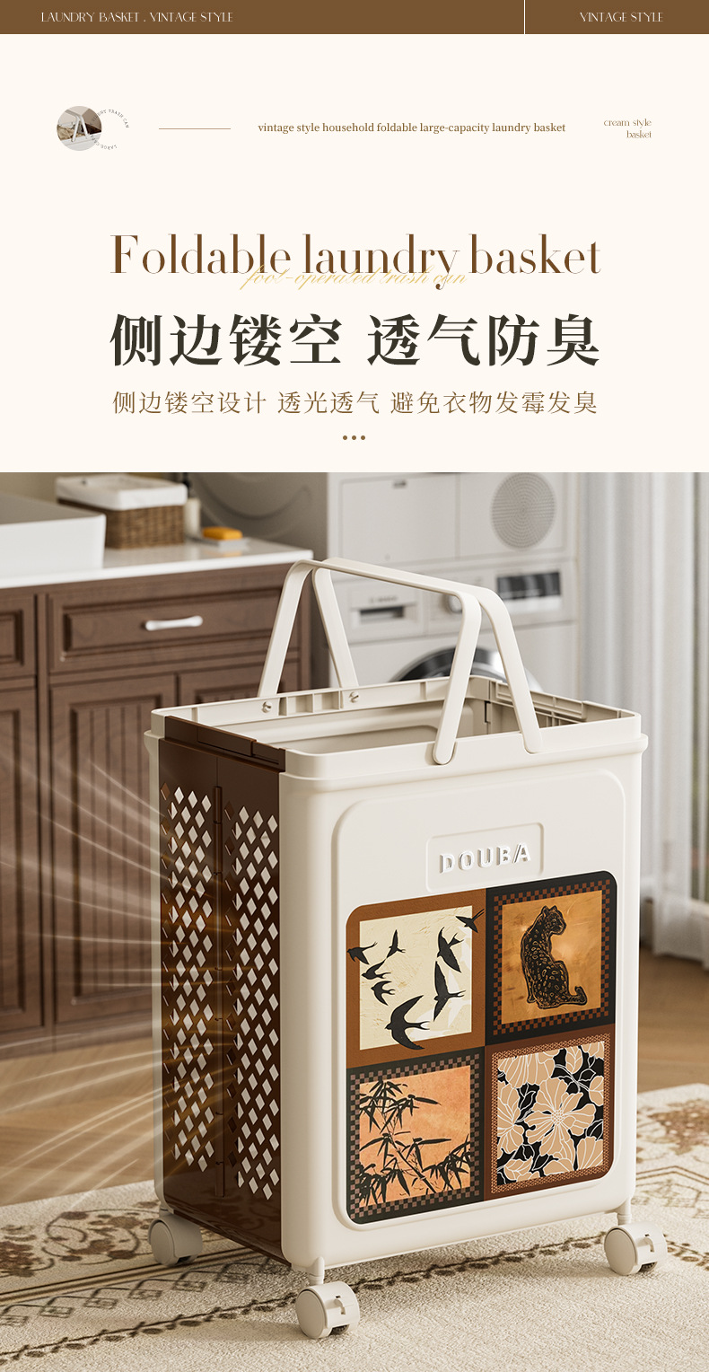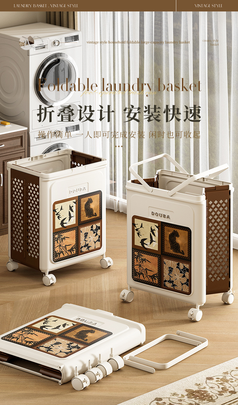 中古风折叠脏衣篮家用洗衣篮收纳筐脏衣篓阳台卫生间脏衣服收纳篮
