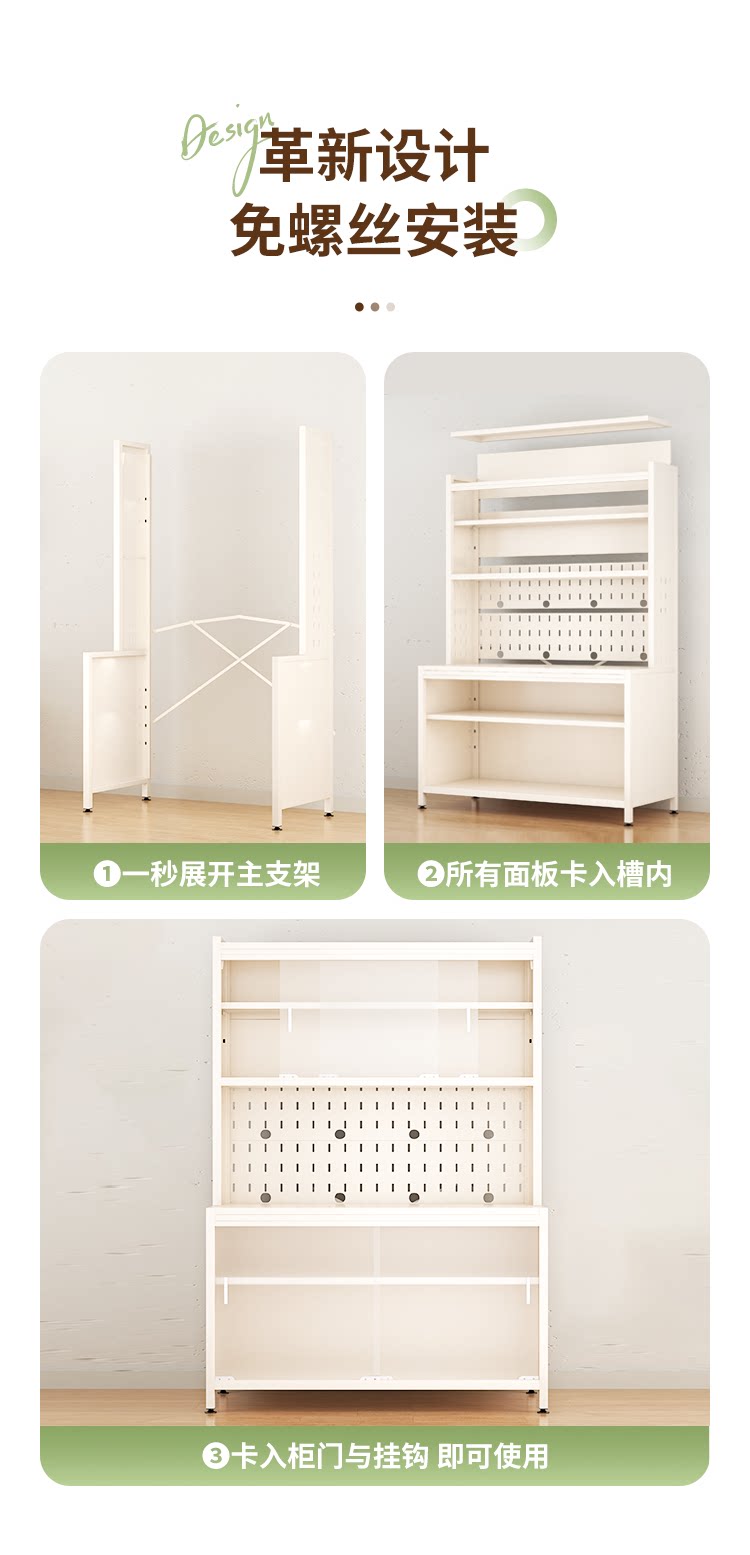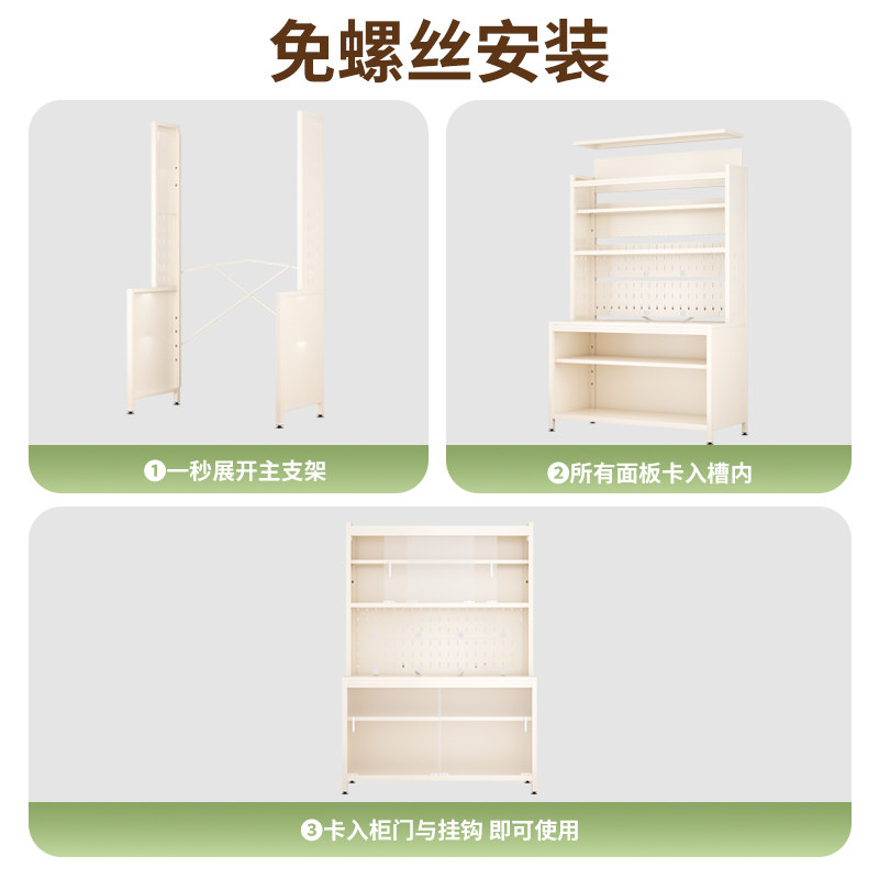 - 【黑灰玻璃门】奶油白 六层82 【免螺丝安装】