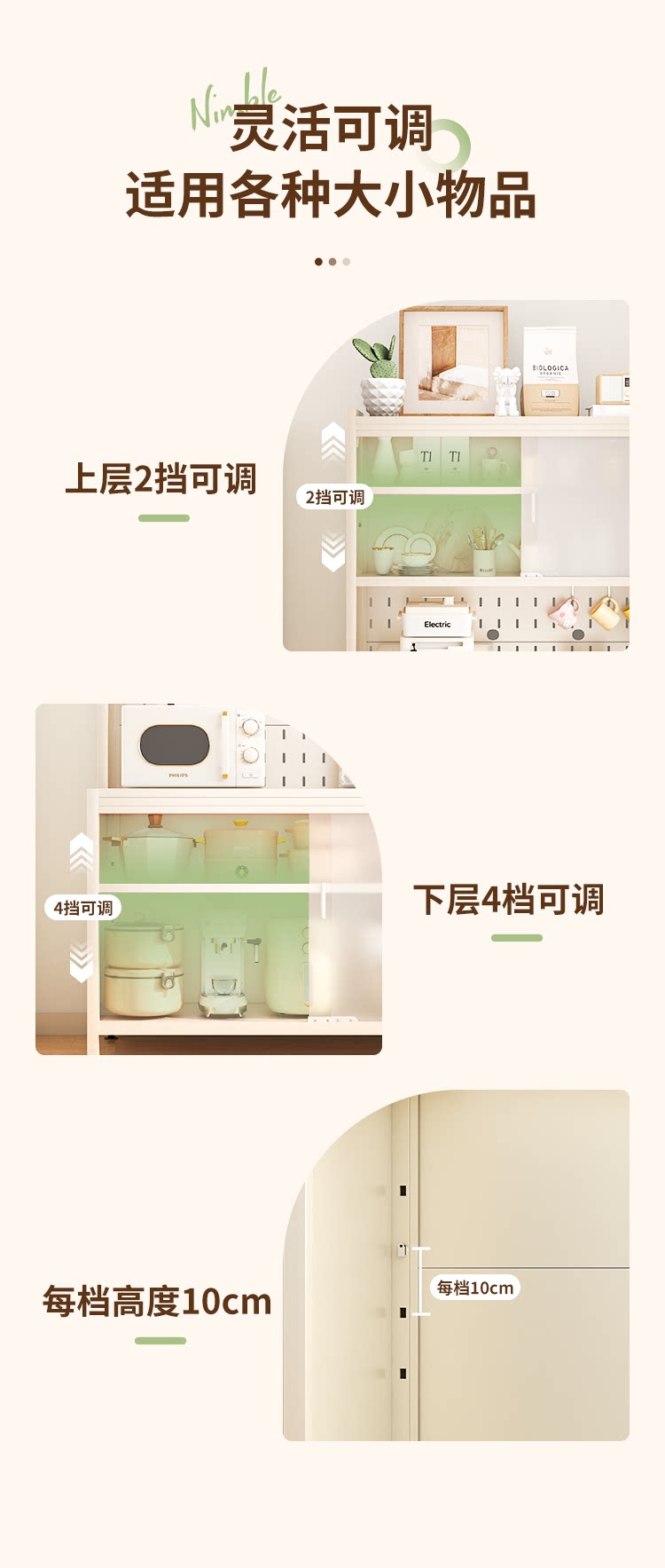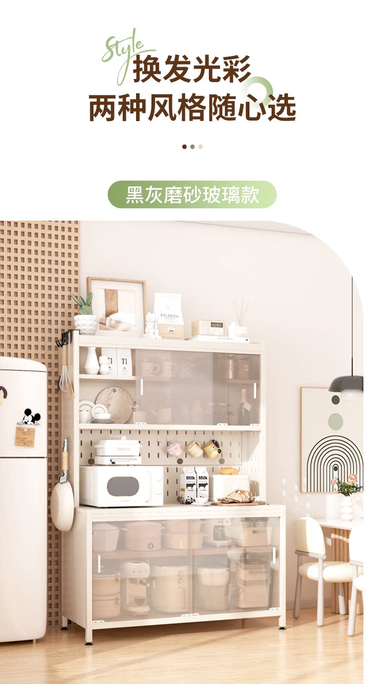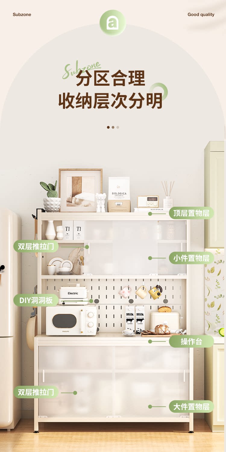雅图诗厨房置物架餐边柜收纳架落地多层餐具微波炉架子储物柜家用