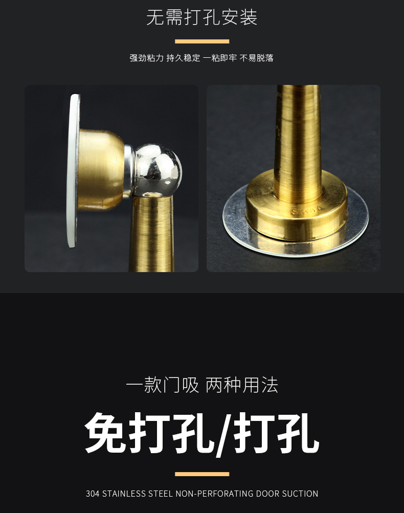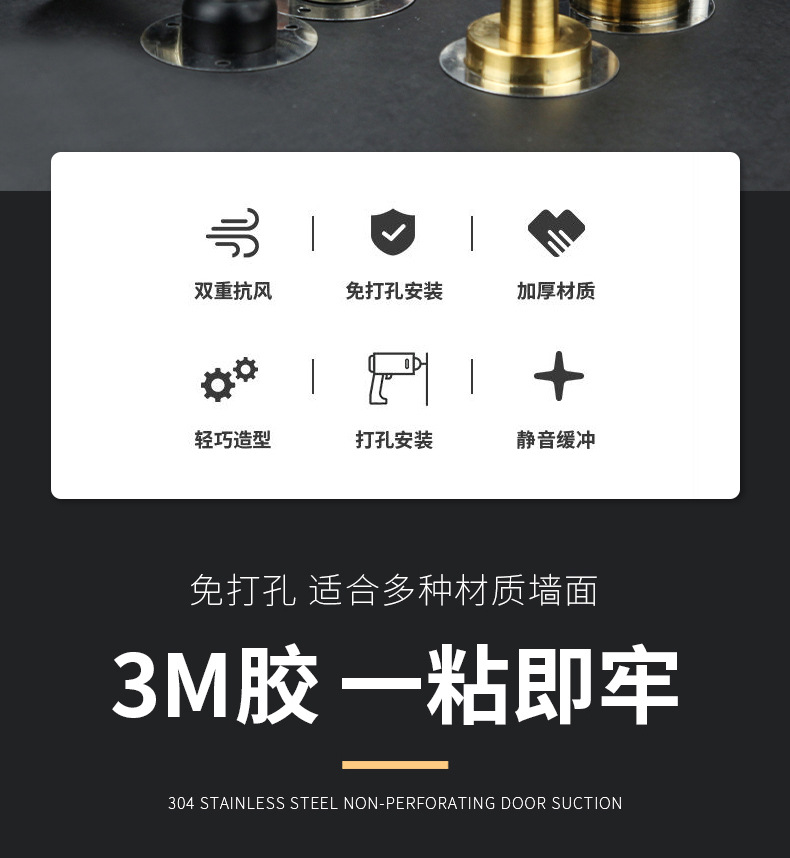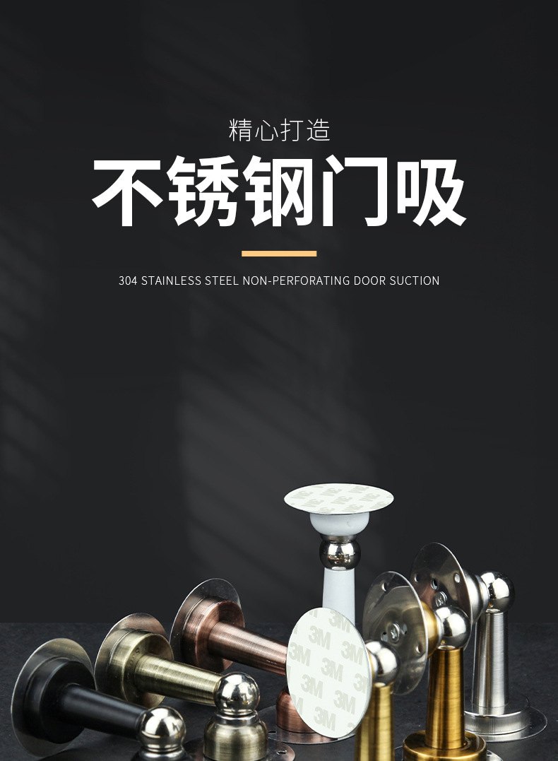 强磁门碰卧室防碰撞防水静音门顶阻门器不锈钢免打孔门吸