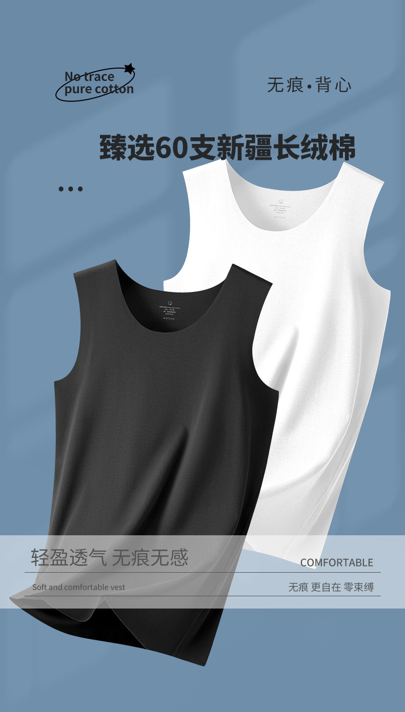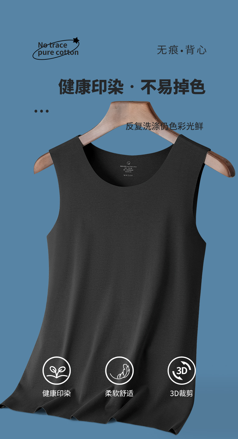 无痕纯棉男士背心圆领内衣宽肩无袖t恤夏季坎肩内搭打底运动汗衫